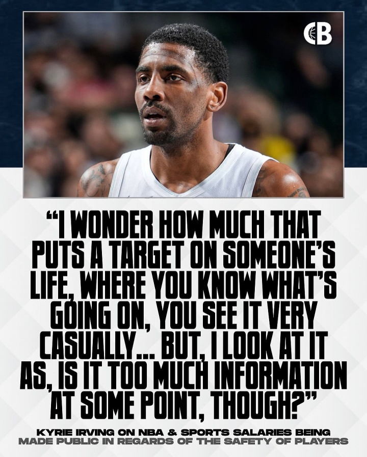 08月15日讯 今日,独行侠后卫凯里-欧文就公开NBA及体育运动员的薪资对球员安全造成的影响发表了个人看法。